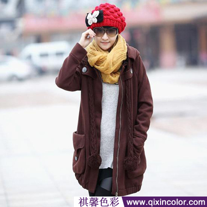 这身装扮并不是抢眼的“调色盘”但帽子是最大的亮点,渲染出热闹的气氛。围巾不张扬的色彩,透出了些青春活力,让全身造型不至于埋没在深啡色的沉闷中。这不得不重申下,色彩没有好坏之分,只是重在色彩搭配运用上。再深沉,再单调的颜色,也会有光彩一面。