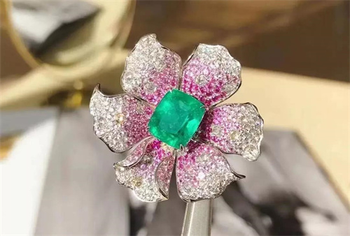 CHAUMET Hortensia Aube Rosée系列三用胸针,色泽清亮,运用到了欧泊、钻石、黄水晶等材质。