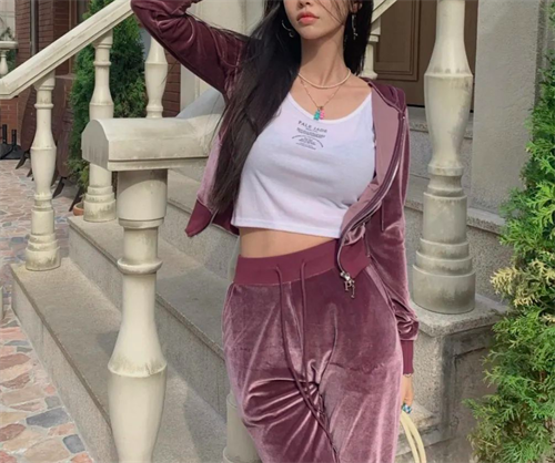 浪漫型人可以选择细腻、有质感的运动材质,比如说天鹅绒、细针织、高支莱卡棉之类的。从千禧年一度火到了现在的天鹅绒修身运动套装,散发光泽,有些款式还有镶水钻之类的装饰,就很适合浪漫型人。