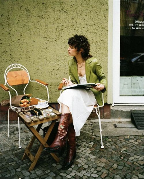如若纯粹一身褐色有时难免会略显沉闷老气,所以可以选择一些有活力的颜色作为点缀,如绿配棕。