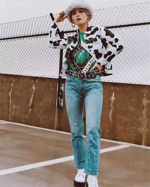 例如特别可爱的黑白斑块的奶牛,其纹路就被时尚圈广泛运用,你可以直接轻松地把它的“皮”穿上身,让人一眼分辨出来,即使只是小面积的单品点缀,也极具辨识度。