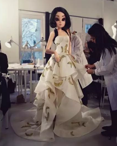 她的“足迹”更是遍布全球时尚之都,这个神似大眼芭比的虚拟网红虽然长得很卡通,不像其它虚拟网红Lil’Miquela或者Shudu那样近似真人,但努努每次穿品牌的衣服都制作得相当逼真。